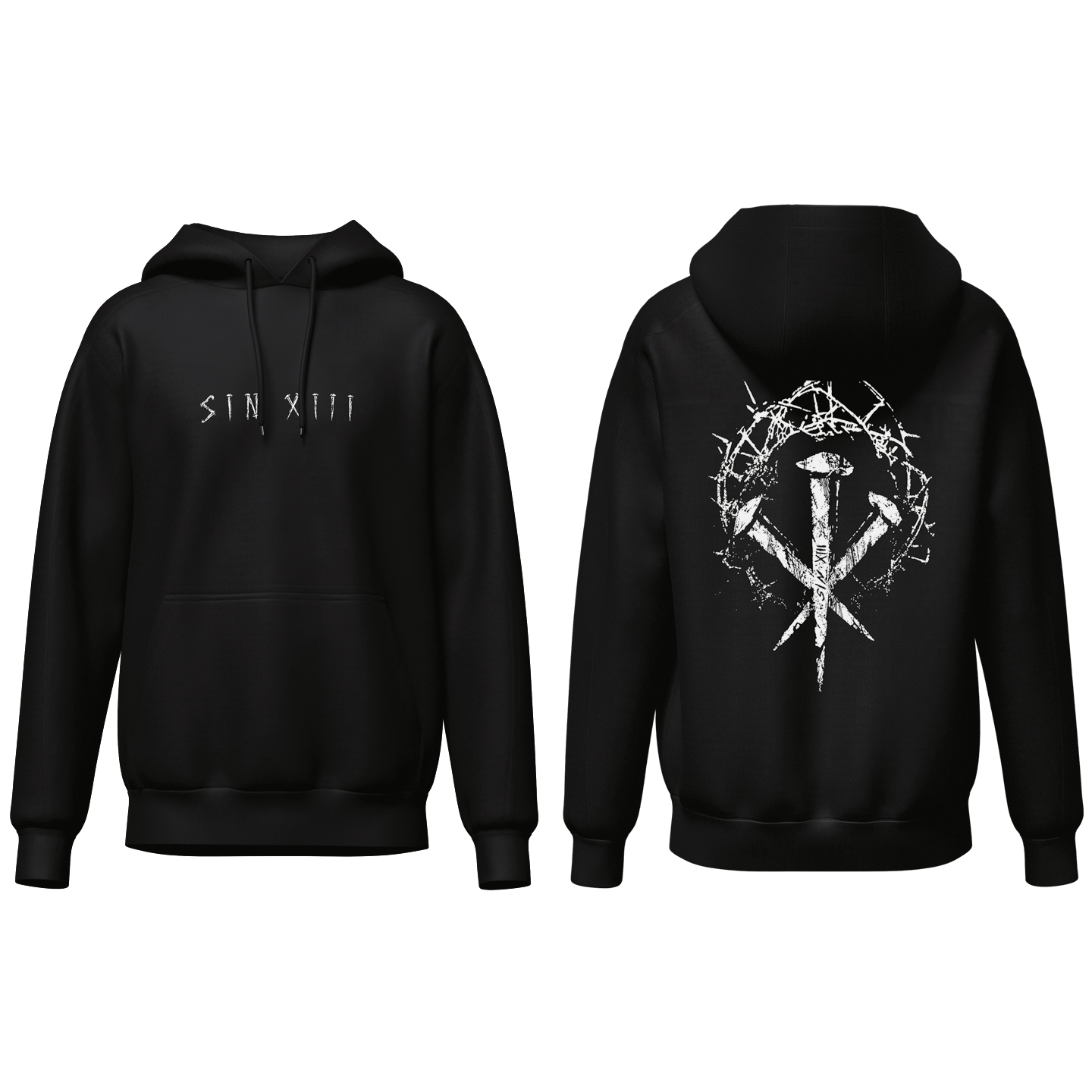 2. Bluza z kapturem SIN XIII. 100% bawełna. Nadruki wykonane sitodrukiem.